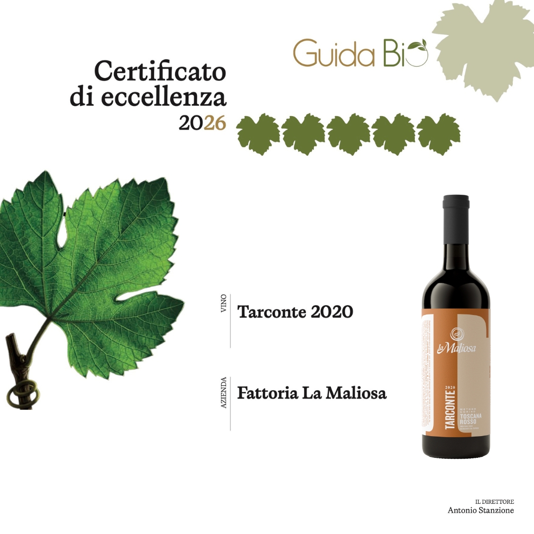 9 Novembre 2025 Guida Bio premia i vini La Maliosa 5 foglie al Tarconte 2020, 4 foglie a Uni 2024 e Rosso 2022